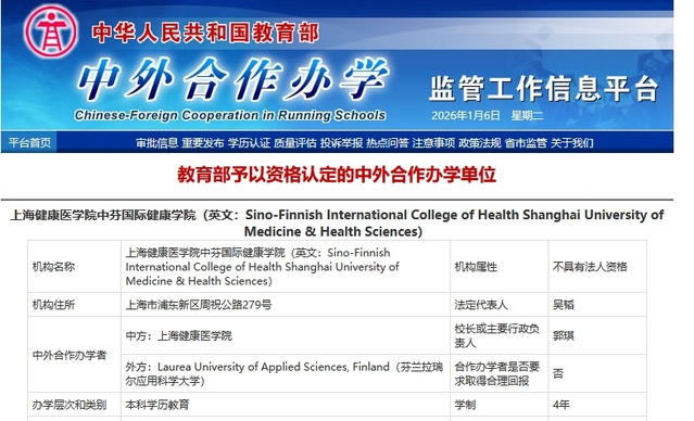 据介绍,中芬学院首批开设康复物理治疗、数据科学与大数据技术两个专业,开展本科层次学历教育,学制4年,采用“4+0”模式。两个专业每年各招收80人,纳入国家普通高等学校招生计划。学生完成学业,符合毕业及学位申请要求的学生,可同时获得WilliamHill中文官方网站本科学历证书及学士学位证书,以及芬兰拉瑞尔应用科学大学医疗保健学士学位或工商管理学士学位。专业设置对接上海市及长三角地区区域经济与大健康产业发展。